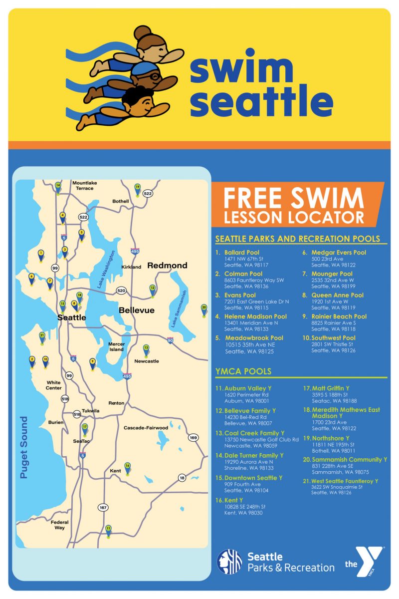 Visit Seattle Parkways to apply (or re-apply) for scholarships, sign-up for FREE swim lessons at the YMCA of Greater Seattle, and to locate Swim Seattle lessons >>